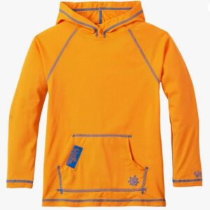 Lands End makes a high quality sun hoodie for kids at a reasonable price. Comfortable material, nice sized hood, good price point